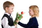 От меня в подарок подснежники возьмет,